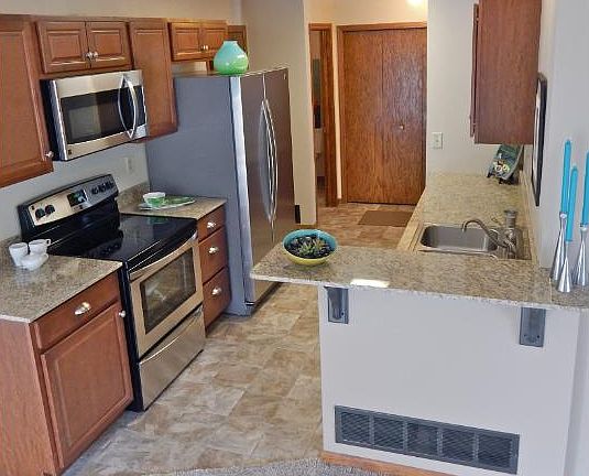 Hard to find end unit with light bright open floor plan. New everything! New carpet throughout, new kitchen cabinets & granite countertops, new stainless appliances, new front loading washer & dryer. Vaulted ceiling in living room. A bathroom on every floor and a giant bonus room on lower level., Directions Hwy 694, North on Silver Lake Rd, W on Innsbruck, Left on 27th, Right on Linden, Left on Black Oak, Right onto Pecks Woods and left on to Pecks Woods Turn. Unit is strait ahead end unit on right side.