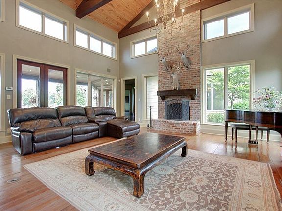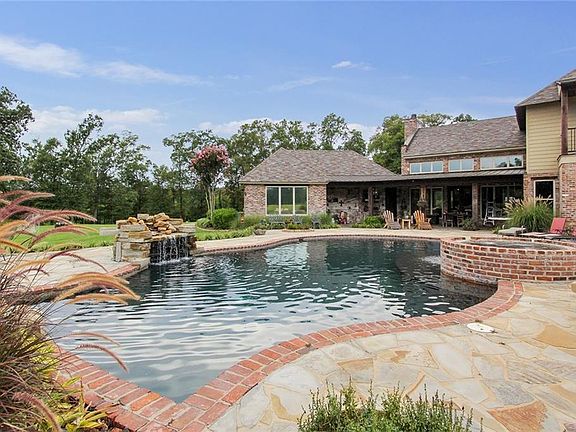 Magnificent in design & scale, this resplendent 17+ acre country estate offers superb detailing, plethora of custom features, sweeping lawns, mature trees, vibrant gardens, & a versatile floor plan topped off by a fish-filled pond with levee and dock, gunite pool with hot tub, diving rock, swim cave & stone patios and porches. Built in 2008, this 6 plus BR, 6+ bath home includes separate office, massive laundry/mud room with full bath 7 an unsurpassed kitchen with all high end appliances, 2 serving/seating islands, wet bar- all overlooking a most welcoming family room with 25-foot ceilings & reclaimed wood floors & ceiling. Upstairs offers large theatre with 100 screen, gameroom and more rooms to use in many ways! The master & 4 other bedrooms, all with their own baths, are downstairs. Fully air-conditioned workshop with boat parking, bath & 3 roll-up doors. Triple car covered parking plus vast amounts of uncovered paved parking. (cont.)