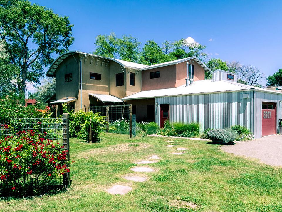 Sold before processing. Rare opportunity to own a stunning N Valley home designed using the principles of "The Not So Big House". An impressive fusion of Valley & contemporary styles that is exceedingly comfortable, eminently livable & an ideal layout for hosting parties. Master-crafted woodwork is combined with stained concrete, glass tile, granite & stainless-steel to create an interior that is efficient yet elegant. Generous living rm, dining rm, study, chef's kitchen & powder room on the main level; 3 bedrooms, 2 full baths & reading nook upstairs. Courtyard w/ waterfall & pond & covered portals. Amazing established landscaping, idyllically nestled along the acequia in the Bosque under majestic trees. Minimize environmental impact while living in an innovative, unique & charming home.