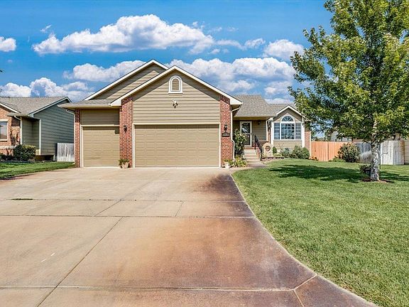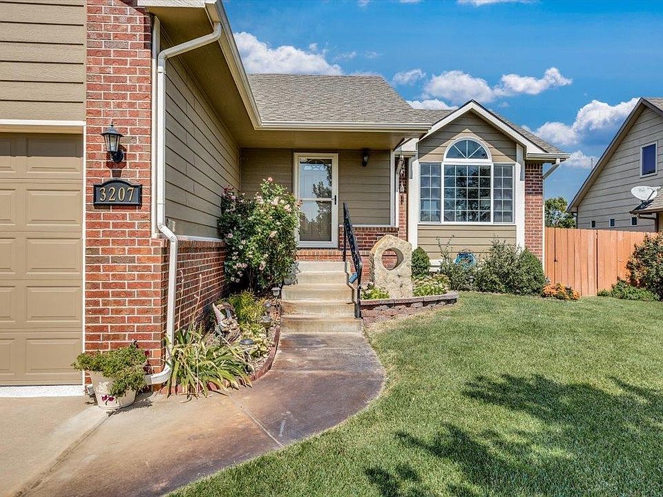 This 10 year old home is better than new and has NO SPECIALS! When you build a home you don’t get mature landscaping, sprinkler system, irrigation well, garage door openers, blinds, all the kitchen appliances and a storage shed! At 3207 S. Blue Lake Ct., in Wichita, you get all that and more! You will love the highway convenience of this south Wichita location yet having the benefit of the Haysville School District! This home is located on a quiet cut-de-sac lot that has no rear neighbors and backs to a tree row! You’ll love the lush yard and landscaping the moment you pull up! The interior has been well cared for and features an open living room, dining room and kitchen floor plan that’s perfect for entertaining! The living room features a vaulted ceiling, a wrought iron railing overlooking the basement stairs and a gas fireplace where you’ll live the convenience and cleanliness this winter! Flip the switch and you’ve got a cozy fire! The kitchen has granite counters, custom rock backsplash, an island with additional eating space and all the appliances remain! The dining space has tons of natural light and a sliding glass door that leads to the composite deck and backyard. Down the hall there is a hall bath with a granite countertop and sparkly, glass tiled backsplash and a tub/shower combination. There are 2 bedrooms on the right side of the hall way and the primary bedroom on the left. The primary bedroom features a walk-in closet and an en-suite with double sinks. The view-out basement features a massive family room, 2 additional bedrooms and the third bathroom with custom tile work. Now’s the time to enjoy the lower interest rates and move in for the holidays! Schedule your private showing today!