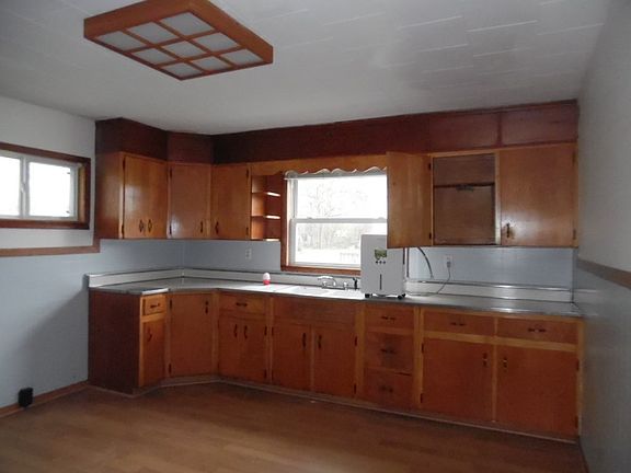 Charming two bedroom bungalow with a covered front porch just right for a swing and lazy summer nights. Eat in kitchen. Four car garage with a flooring attic and storage. Gravel driveway. GFA and ca. Newer replacement windows and siding.