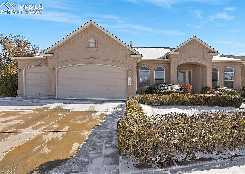 BRAND NEW FLOORING ON THE MAIN LEVEL!! Dining area, Bedrooms and Bathrooms on main level have brand new flooring not reflected in the photos. Beautiful original wood floors throughout common areas. Large Corner Lot that faces the neighborhood park and a perfect view of Pikes Peak from the formal dining room! NEW PAINT!! Large Corner Lot that faces the neighborhood park and a perfect view of Pikes Peak from the formal dining room! 5 BEDROOMS, 3 FULL BATHROOMS, OVERSIZED 3 CAR GARAGE! This home has a bright & sunny nicely planned layout perfect for daily living & for large gatherings! Open living room with fireplace, skylights & large windows. The kitchen is the hub of the house and has great counter & cabinets space as well as a pantry. Wood floors at common areas & wood accents throughout. Primary bedroom on the main level with attached five piece bathroom & large walk-in closet. A secondary bedroom is also on main level. Basement if fully finished with a huge great room, three more spacious bedrooms, full bathroom and a finished hobby/craft room or use as an organized storage room. Established landscaping, privacy fenced backyard, sheds and the garage has an exterior door to the backyard. Freshly painted interior is a blank slate for you to add your personal touch! Awesome location near military bases and quick access to Powers Blvd.