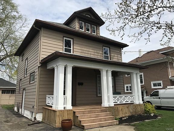 Great opportunity to own in the Maine-Endwell school district! This beautiful two story, 3 bedroom home is situated on a quiet neighborhood street with a private backyard. It has NEVER flooded and is move-in ready with an updated kitchen and bathrooms, 2nd floor laundry area and fresh paint throughout. You'll love the open concept living and dining area with beamed ceilings and brand new flooring. This home also features new replacement windows within the last 3 years. There is plenty of storage with a full attic and basement. Both front and back porches have been revamped with new composite decking. This home is the perfect combination of updates while maintaining that old style charm!