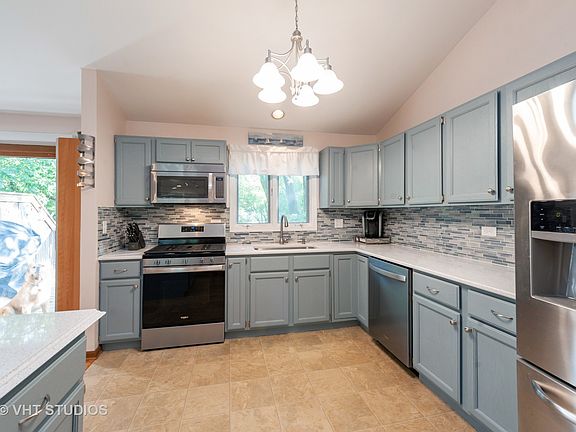 Beautiful home on a fully fenced, large wooded lot. Enjoy this view from the balcony and the walk out first floor patio. Yard backs up to a stream & park. 3 bedrooms with new carpet, 2 full baths recently updated, large family room. Kitchen with new quartz countertops, freshly updated cabinets, appliances, and tile backsplash. Large kitchen island with open concept floor plan. Large laundry room. Roof replaced 5 years ago with 25 year warranty. Oversized garage and wide, newly sealed driveway provide extra parking, perfect for a boat. House is just blocks from boat launch.
