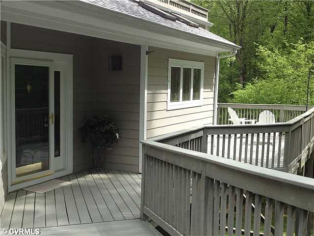 Very private, well-kept condo with gorgeous wooded views of Lewis G. Larus Park. Wood floors in excellent condition through out formal and family rooms. Marble tile floor in foyer and baths. Huge kitchen with lots of cabinets and miles of counter space, an island and eat-in area which opens to deck. Large Master suite with built in bookcases and his and her's walk in closets. Luxurious Master Bath includes double vanity, large jetted tub and seperate shower. The Bluffs Conods are conveniently located within walking distance to shopping, dining and doctors offices. Also within a short distance to Stony Point Fashion Park, Highways and Hospitals.