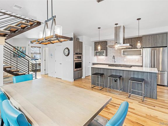 The Downtown Denver Lifestyle is Calling! Welcome home to this stylish and expansive duplex, perfectly situated near Sloan's Lake, Jefferson Park, and the Highlands. Nestled on a quiet street, this light-filled, south-facing home offers comfort and style. Upon entering, the open floor plan invites you to explore the thoughtfully designed main-level living spaces. To your left, a bright home office sits just off the entrance, bathed in natural light, and connects to a 3/4 bathroom. Next, step into the kitchen and dining area, where the oversized island is perfect for entertaining. Ample cabinetry provides plenty of storage for your favorite cookware and serving dishes, while the spacious dining area ensures everyone has a seat at the table. Unwind in the inviting living room, or step outside to your private backyard, complete w/ fire pit—ideal for relaxation and entertaining. Upstairs, a floating staircase leads you to spacious and comfortable sleeping quarters. The primary suite boasts masterfully placed windows, a lush five-piece bath w/ a walk-in shower, and generous walk-in closet w/ additional storage. Down the hall, the 2nd bedroom offers its own private south-facing balcony, an en-suite bathroom + walk-in closet. An excellent work-from-home retreat w/ privacy and space. Conveniently located laundry area sits mid-hallway, connecting both bedrooms. The final stop on your tour is the bright and versatile 3rd floor flex space. Picture yourself playing games indoors or relaxing on the expansive rooftop deck w/ mountain and downtown views. 3rd bedroom, complete with a full bathroom, provides a comfortable space for guests. Located in one of Denver’s hottest neighborhoods, you'll enjoy a vibrant dining and entertainment scene just minutes from the city’s urban core. With easy access to I-25, I-70, and 6th Ave, plus a spacious 2-car garage accessed via a wide alley. This has it all. Welcome home! Showings begin 2/28—contact listing agent to schedule a personal tour!