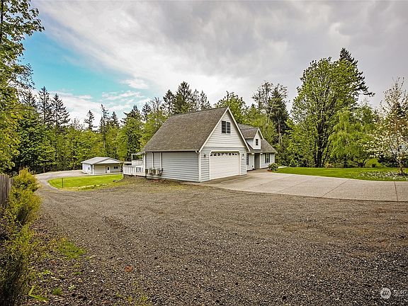 You will love this beautiful home plus huge shop on nearly 5 acres. This daylight rambler offers open concept living with spacious kitchen w/granite counters, breakfast bar and stainless appliances and large living room. Primary suite and office/den is also on the main floor. Primary suite leads out to a deck overlooking your park-like landscape. Two large bedrooms are downstairs, one w/a door to the outside. Laundry area is also downstairs. Detached garage has a fully nearly 400 sf finished office/rec room space above it w/separate entrance The 36x36 shop and attached carport have room for all your hobbies and toys. RV parking and storage shed too. Located in desirable Manchester area, not far from waterfront and ferry commuting.