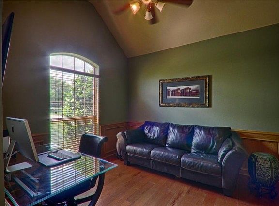 WELCOME TO YOUR NEW HOME! Inviting Entry opens to Formal Dining & Study with built ins & French doors for added privacy. Open floor plan leads into Family Room with Stone Fireplace surrounded by windows for View of Jogging trail, Greenbelt & Serene Pond. This room flows into Breakfast room & wall of windows for more Views. Breakfast bar, granite counters & gas cook top make preparing gourmet meals for Family & Friends a delight! French door to patio for morning coffee or evening refreshments to relax and enjoy View or Stroll to pond for fishing & feeding the friendly ducks. Master Bed Room Retreat has bay window for more Views. Master bath has double sinks, jetted tub plus shower.Walk in closet with built ins Bed rooms 2 & 3 are split from master side & share adjoining bath with double sinks. Laundry Room has counter with sink plus extra storage. Home has Wood Floors & Tile thru outClose to Shopping, Mitch Park YMCA, golf & schools