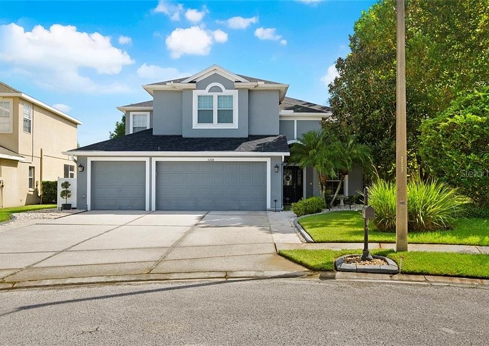 This home is located in the highly desirable gated community of Plantation Palms in one of the fastest growing counties in Florida. All brand NEW in 2020: ROOF, AIR CONDITIONER and POOL CAGE SCREEN! Water softener included! The home sits on a cul-de-sac within steps from the Land O Lakes recreation center (soccer, baseball, football, basketball, tennis, swimming, skate park). There is concrete landscape curbing around the entire perimeter of the home along with mature palm trees and stunning landscape lighting. The lot backs up to the 10th hole of the golf course and has a HUGE back yard. The salt-water pool has a Pebble Tec finish and pavered deck and comes with a pool safety fence. The kitchen has 42-inch cabinets, stainless steel appliances, ceiling height exhaust fan, granite countertops and glass tile backsplash. Downstairs has wood floors in the formal living/dining spaces, great room, eat in kitchen area and walk in pantry/storage under stairs. Laundry room with tub sink and cabinets is also downstairs along with a bedroom and full bath perfect for guests. 2 sets of sliders and a door all take you out to the lanai and pool. Upstairs you will find the owner's suite, ensuite bathroom with shower, double sinks and garden tub. Adjacent to the owner's suite is a versatile space that can be used as an office or nursery. The bonus room upstairs comes with surround sound speakers and a high definition projector that will put movies up on a 90-inch screen! 2 more bedrooms, a large bathroom with double sinks and large storage closet finish out the upstairs. Plantation Palms has an 18-hole championship golf course, a lighted golf range, Mulligan's Pub and miniature golf right in the community. The Land O Lakes library is also nearby. The schools all have A ratings. You will be near I-75, US 41 and the Suncoast Parkway. Shopping includes The Shops at Wiregrass and Tampa Premium Outlets along with countless restaurants and entertainment including the newly opened Main Event and the Flying Squirrel. This amazing home is a Florida lifestyle dream!