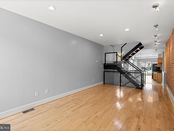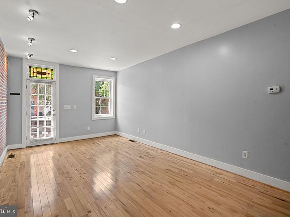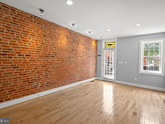 Beautifully renovated Federal style rowhome in Canton boasts over 2,133 square feet, 3 levels, high-end details, an iconic exposed brick wall, artwork lighting, and a stained glass transom top door window welcoming you home. A full site line and hardwoods greet you as you step inside to find a living room with a modern 2 story staircase w/an exposed brick wall & lighting , a flow to a dining area with a walkout, and a gourmet kitchen. Sleek granite counters draws your eyes in the upscale kitchen boasting custom backsplash, raised frame wood cabinetry, a breakfast bar, stainless steel appliances with an upper exhaust, and a separate eating area with glass slider access to a patio and parking. Owner's suite presents hardwood flooring, exposed brick wall, vaulted ceiling with a ceiling fan, a double closet w/wood doors, a plant shelf and full bath w/new vanity. The finished lower level offers a family room or 3rd bedroom accented by ceramic flooring and uplit wall lighting, extra storage, and a full bath. Freshly painted throughout! New bath vanities & lighting. Roof was silvercoated in 2019. New A/C fan 7/23. A deck can easily be added! One of the best locations being just 1 block from the park & dog park. 2 blocks from Canton Waterfront & Water Taxi. 4 blocks from Canton Square, Canton Shopping Center and Restaurants.