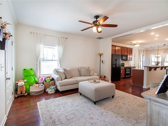 Welcome to 3208 Gabby Drive in Piney Woods! This thoughtfully designed 3-bedroom, 2.5-bath home offers a perfect blend of style, space, and comfort. The open-concept main floor includes a living room with hardwood floors, a kitchen featuring granite countertops, a spacious island with seating, and a walk-in pantry, along with a bright breakfast room. The primary suite on the main level boasts double sinks and a walk-in closet for added convenience. Upstairs, you'll find two additional bedrooms, a full bath, and a versatile loft space, ideal for your personal needs. Outside, enjoy a private, fenced backyard with a patio and a charming covered front porch for relaxation. With a two-car garage and nearby parks and trails, this home complements an active lifestyle while providing modern living at its finest.
