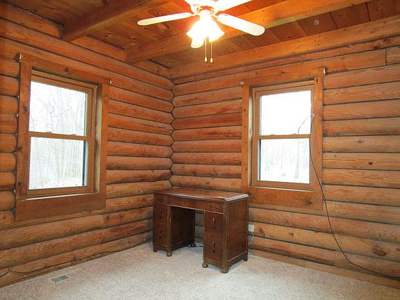 If your looking for country style seclusion with abundant wild-life this home is yours. Offering over 2000 sq ft of living space and a 4th loft style bedroom with 2 full baths this Lincoln Log Built home also offers total replacement Hi-Ef windows, large open living spaces a wood burner that can heat the entire home as well as City water, Natural Gas and a 2.5 Car garage. The outdoor living space is what you will simply love with a huge walk around front porch and deck area as well as a walk out master bedroom with its own decking. Take a look at this home and the quiet living it affords your family it certainly won't disappoint.