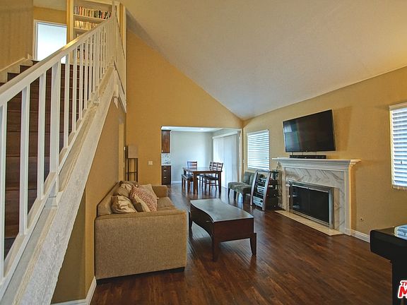 This home has been beautifully built with a modern architectural interior & layout. Walking in from the front door or in from the two car garage doorway, maple colored wood floors welcome you to walk down into the living room area, or the stairway up to the second floor. The living room has a gorgeous fireplace that has been centered between 2 large windows, as the vaulted ceiling makes the home cozy and spacious. Kitchen has granite counter tops complimented by modern designed wood cabinets. The kitchen & dining room have recessed lighting and access to sliding glass door. Bedrooms are located on first and second floor with 1 full bathroom on each floor. Both bathrooms are tiled and equipped with beautiful sink and cabinets. This home also includes a wrap around patio spacious enough for almost any activity desired. This home and community offer a large community pool and clubhouse, a playground with park like settings, and also in the award winning Brea Olinda School District!