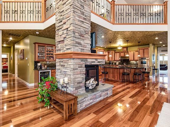 Exquisite custom home!Great floor plan with beautiful Lyptus hardwood floors, granite slabs, chefs kitchen with Dacor, Miele and Sub Zero appliances. Grand rock fireplace, main level master with fireplace, large walk in closet and bathroom with soaking tub. Seperate family room with wet bar, large upstairs loft area,beautiful covered outdoor living area with all the comforts you are looking for including a large screen TV. RV parking and amazing shop area in the garage.