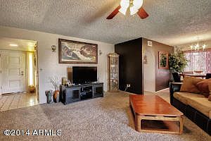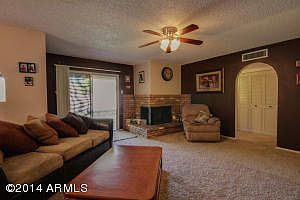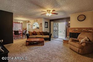 At over 1,521 sqft, this freshly painted, block home's 3 bedroom 2 bath split floor plan feels spacious & open. Enjoy a large Great room/Living room + Dining room combo with a cozy fireplace in the center of it all. A large eat-in kitchen w tons of storage also has convenient pass through windows to the dining room & the backyard covered patio helping to make entertaining a breeze. The large guest bedrooms are positioned well away from the Master retreat, adding privacy, comfort & function to this friendly home. The Master retreat includes double H/H closets w/ mirrored doors & a private exit to the backyard. The full Master bath conveniently features double sinks. 1 of the large guest bedrooms features a walk-in closet & is currently set up as an office.No HOA The easy care front yard is.