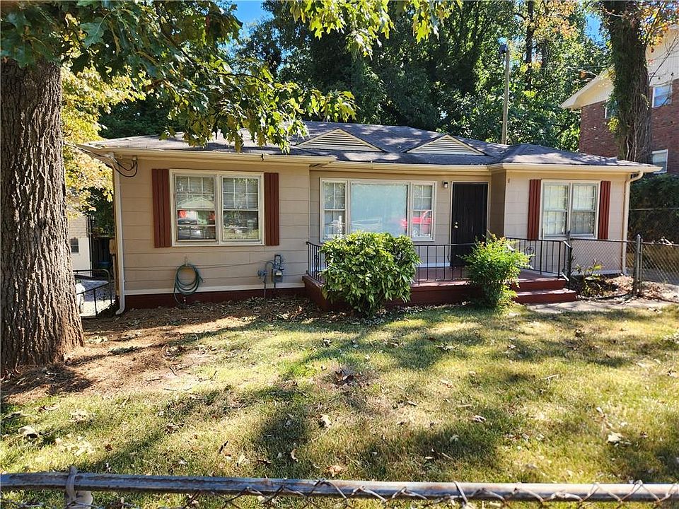 Charming 3 bedroom and 1 1/2 bath ranch in the heart of Hapeville. Level front yard with fence. Back yard is fenced with gates on both sides of the home. Fresh exterior paint and large front porch / patio.  Updated electrical panel and plumbing.  New interior paint and refinished original hard wood floors. Separate dinning and living room with eat in kitchen.  Laundry room off of kitchen.  On crawl Space with some storage. Walking distance to shopping and restaurants, 5 minutes to Porsche Experience Center, 10 minutes to the airport, 10 minutes to Delta Headquarters and Training Center. Minutes from downtown Atlanta. Please note current taxes do not reflect homestead exemption.