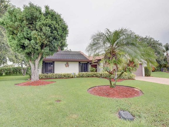 Lovely home on a cul-d-sac in centrally located Boca, convenient to everything.Large back yard is fenced in and ideal for pets.Granite counters,Kitchen Aid stainless steel appliances, new wood floor, accordion shutters, home generator, new AC handler,solar heated salt water pool and more.Timbercreek has low HOA fees and highly rated schools!