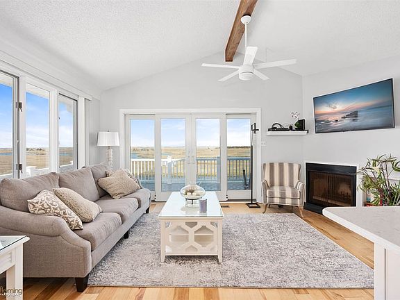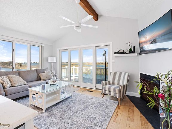 Stunning views of the bay & wetlands await the lucky new owner of this 4 bedroom, 2.5 bathroom bayfront townhouse! From morning coffee on the deck, to afternoons spent fishing, crabbing, or kayaking, to glorious evening sunsets, you can't beat life on the bay! Upstairs is a beautiful bayside great room area with sliding glass doors, bringing the view inside! A magnificent gourmet kitchen has been fully redone and offers a great space for cooking & entertaining, without missing a moment with your guests. Also upstairs is the master suite, including a master bath with combination rainshower and massaging showerhead. There is also a separate powder room for guests. Downstairs three additional bedrooms and a bathroom mean plenty of room for the family or overnight guests. A sizable garage are offers parking for one car and storage for all your bay & beach toys. The beach is an easy walk, and the edge of the business district is nearby--close to the shops for getting a morning newspaper or walking to dinner in the evening. Outside living includes a large fixed dock over the water great views and a spot to enjoy all kinds of water activities, plus an adjacent boatslip. Swimming, kayaking, jetskiing and more are available right at your back door--or explore "The Maze" of channels that criss cross the wetlands. Birds and wildlife are abundant adding to the magic. The second floor deck off the great room is an absolutely unbeatable spot to relax, unwind, enjoy an afternoon seabreeze, and take in the beauty of life on the bay! The views of the bay and wetlands stretch for miles!
