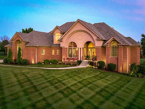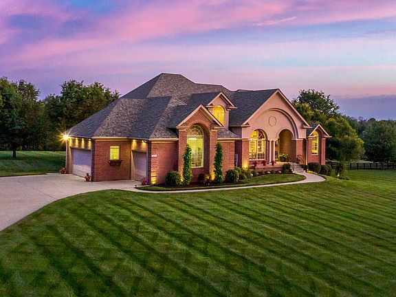 Gorgeous one-of-a-kind executive home sits on 1.77 splendid acres and has been meticulously maintained and improved! Located in highly desirable Prospect off of Covered Bridge Road, this gem of a house is surrounded by lush rolling fields and scenic horse farms, yet is minutes from shopping, grocery, and dining and best of all is located in the coveted North Oldham Co. school district! Loads of natural light fill this gracious home and its many large windows perfectly frame the enticing views. First floor features 13-foot ceilings, hardwood floors, and a lovely first-floor master suite. A gourmet kitchen with new stainless steel GE Profile appliances opens to a cozy hearth room with fireplace and a breakfast nook. The great room with fireplace and large windows overlooking green space opens to a formal dining area. Don't overlook the beautiful curved millwork in the ceiling - this is such a unique and gorgeous place! The first floor master suite features another fireplace a sitting room, and a Juliet balcony from which you can enjoy the beautiful outdoors. A spacious master bathroom features Bello Chino granite countertops, large jetted tub, and handsomely tiled shower. Second floor features two en-suites and a separate sitting room, while the large and open walkout basement features the fourth (and possibly fifth) bedroom, full bath, office, and large family space. A covered patio is the perfect place to unwind and watch the sunset, or from the perfectly positioned deck. Don't overlook the three-car garage and handy first-floor laundry room. This stunning property is sure to please!