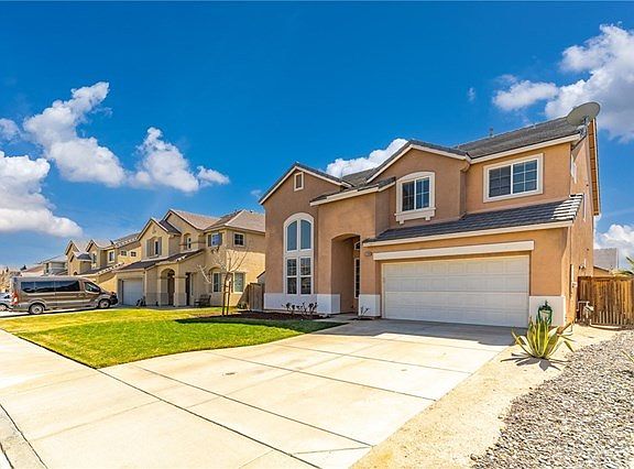 Beautiful 5 bedroom home. High ceilings in living room, open & bright with built in bar in formal dining room. Kitchen has center island with breakfast bar, ample cabinets & counters, large pantry, stainless steel appliances including the refrigerator, in formal dining which is open to the spacious family room with gas burning fireplace with decorative wood mantle & sliding glass door to back yard. Downstairs bedroom, full guest bathroom as well as spacious laundry room. Upstairs large loft overlooking the living room. Off the loft there is a large secondary bedroom, 1 of the 3 secondary upstairs bedrooms. The master retreat has a gorgeous decorative wood wall, ceiling fan with attached master bathroom with dual sink vanity, separate bathtub & shower & large walk in closet. 2 additions secondary bedrooms are upstairs, one with a walk in closet. Upstairs guest bath with dual sink vanity & designer tile floors. Covered patio, shed, & room to play as well as attached 2 car garage.
