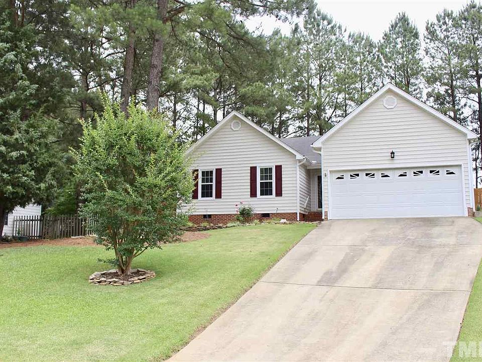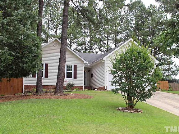 Fantastic ranch on gorgeous cul-de-sac lot. Well maintained with great floor plan. Large family room with gas log fireplace and dining area overlook the fenced backyard. Larger master suite with separate tub and shower plus walk in closet make this a great retreat. Current owners have done many updates including both bathrooms with vanities, fixtures, and lighting, flooring throughout, fence, shed, dishwasher, blinds, dishwasher, disposal, and much more. Great location convenient to I540 and North Raleigh