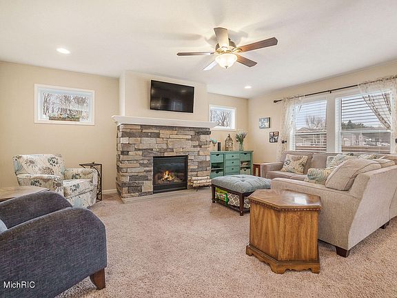 Beautifully maintained 3 bedroom, 2.5 bath home with over 2200 square feet of finished living space! Sitting in a great Kalamazoo Township neighborhood, the home sits on a quiet cul-de-sac. The main floor features an open floor plan with stone facade fireplace. The kitchen has upgraded quartz counters, center island, and appliances are included with the sale. The eating area has a slider to the very large deck. There is also main floor laundry and a half bath. Upstairs, there is a spacious landing area perfect for another living space. The spacious master suite has a walk-in closet and ensuite with shower and tub. Two more spacious bedrooms and a full bath round out this floor. The basement features a large family room along with an egress window. There is also a storage room and is plumbed for an additional bath. The backyard has a 6ft privacy fence along with the spacious deck and concrete patio. This home is centrally located and close to the Kal Haven Trail!