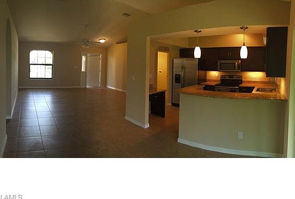 **BRAND NEW CONSTRUCTION, TO BE COMPLETE MID APRIL 2016**GREAT LOCATION OFF SANTA BARBARA BLVD with Western exposure and plenty of room to add a pool**ALL CITY OF CAPE CORAL ASSESSMENTS PAID IN FULL!** BONUS: NOT in a flood zone, NO flood insurance required! Convenient location with easy access to Veteran's Memorial Parkway, medical facilities, shopping, dining & entertainment. Great room design with 3 bedrooms, 2 baths, 4 ceiling fans, split bedrooms, inside laundry room with deep sink and large (9x20) screened lanai. Some features of this home include: tile floors throughout with carpet in the 3 bedrooms, granite counter tops in kitchen and both bathrooms. Master bedroom has a tray ceiling, large walk-in closet with a master bath that has dual sinks and walk-in shower. Stainless steel kitchen appliances to include: side by side refrigerator, dishwasher, microwave and range. Kitchen will also have under cabinet lighting.