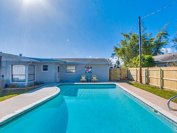 No detail has been overlooked! This updated mid century home has tons of charm & amazing living space! 4 bedrooms & 2.5 baths, a sprawling floor plan with built in features. Living room has a wood burning fireplace, Kitchen has been completely redone with upgraded appliances, shaker style cabinets and granite. There is a large Master with a walk in closet and en-suite updated bath. Special features in this home include built in display shelves, coffee/wine bar, upgraded lighting & fixtures, new paint in the interior/exterior, Large laundry room with sink & extra fridge, shutters, quiet dead end street, new fence surrounding a large pool, patio and shed. Home is in a great central location, close to schools, shopping and downtown Melbourne. If you are looking for Move in Ready, this is it!