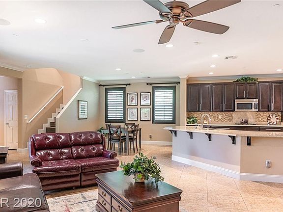 If you prefer a home that's immaculate, comes with more upgrades than we can list, and features an abundance of versatile living spaces, then this is the home for you. Located in amenity and park rich Inspirada, you'll enjoy multiple pools, recreation areas, trails, pet parks, and even a bistro. Once home, you can unwind in any one of the four living spaces including a living room and family room downstairs, as well as a loft and massive media room upstairs. The home comes with a lower level 4th bedroom with full bath and a graciously sized master suite along with two additional bedrooms on the upper level. In the evening you'll be able to relax in the low maintenance backyard, adorned with a covered patio, misting system, and Lynx barbecue. The upgrades don't stop at the air conditioned 3 car garage, which features a plethora of cabinets for storage, and an epoxy floor.