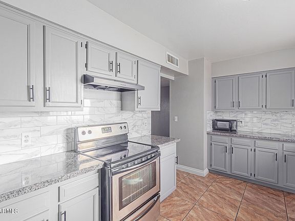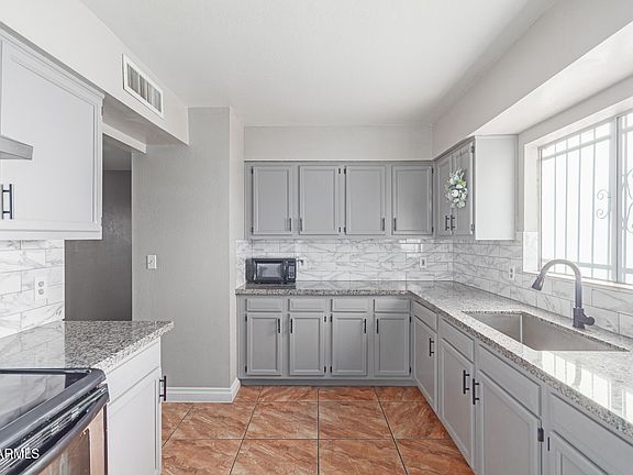 Discover the joy of owning this 3-bedroom home in Phoenix! This property offers a 2-car garage with an extended driveway. Inside, the inviting living room sets the stage for a cozy living experience, enhanced by tile flooring and neutral palette throughout. You'll also have a formal dining room with sliding glass doors that merge the indoor with the outdoor living. Impeccable kitchen boasts plenty of cabinets, stainless steel appliances, subway tile backsplash, and sleek granite counters. Retreat to the romantic primary bedroom to find a private bathroom that adds convenience to your daily routine. Spacious backyard features a covered patio, artificial turf, RV gate, and a detached workshop ideal for any DIY enthusiast. Don't miss out on this opportunity!