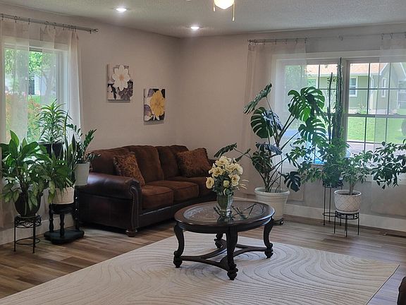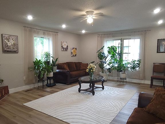 Recently updated, this inviting home offers comfort and functionality throughout. Enjoy warm summer days by the pool and cozy winter nights by the wood-burning fireplace. The home features 3 bedrooms and 2 bathrooms, including a spacious kitchen with newer cabinets and countertops--perfect for preparing homemade meals. Two generous living areas provide space for entertaining or family activities. Two of the three bedrooms comfortably fit king-size beds.Step outside to a relaxing backyard retreat with a pool and a covered patio, ideal for evening gatherings. The detached garage includes a large hobby room/ workshop. Additional highlights include a fenced yard, new HVAC system and gutters (2024), and a sound-insulated utility room for added comfort.
