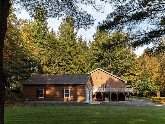 This incredible 4 Bedroom, 3 full bath cape cod sits on a 2.25 acre, partially wooded lot on a quiet street off of Rte 3. This home is just steps from hiking & snow mobile trails & 5 minutes from the Fort Drum gate! Upon arrival you will find carefully placed trees, shrubs & flowers amongst a brand new retaining wall, a freshly stained deck & a concrete patio. Inside you'll be greeted with a desirable, open floor plan with the same gorgeous, vinyl floors guiding you throughout. Cathedral ceilings & tons of natural light from the vinyl windows cover the living room. The kitchen offers plenty of cabinet & counter space, newer stainless steel appliances & opens up to a lovely formal dining room. The primary bedroom offers a master closet and a fully renovated bathroom. An additional, updated full bath and 2 more bedrooms to complete the first floor! Oak treads will guide you to the one-of-a-kind 2nd floor loft area, perfect for an office or a bedroom. The walk out basement offers a family room with a bar, a full bath & a laundry room with a brand new washer & dryer. The 2 car garage is 30x24 with a brand new E.V charger. Sq ft includes finished basement & loft. Public water & sewer!