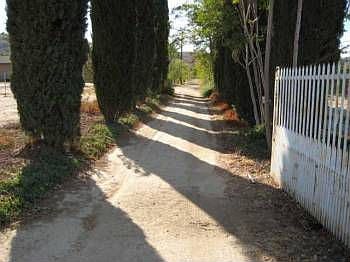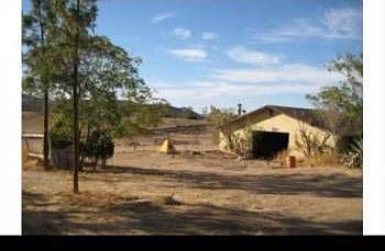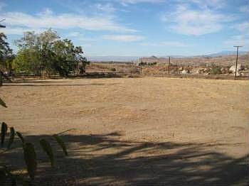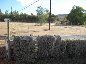 Working Thoroughbred horse ranch. 10.76 acres all useable. Completely cross fenced and electrified with automatic livestock waters complete property. Two barns. Haybarn is newly built with room for 3 truckloads of hay. 5 ton grain silo, Hot walker and round pen. 4 tenths mile track with prof. starting gate. Barn is stick built, 5 stalls, two foaling stalls with closed circuit and a tack room, center aisle breezway. Needs a new roof , two stalls with attached runways for layups.. Includes several other small outbuildings for equipment storaget. The house is an all electric single story ranch style with all ceramic tile flooring. Kitchen has large granite center island. Large Master bedroom, large secondary bedroom and a smaller bedroom/office room. Master bathroom has a walk in shower, no tub. No cabinetry in the secondary bathroom. Living room and dining area are brightly painted and very colorful. Detached 2 car garage. Home is in excellent condition.. Ideal small horse ranch property right opposite Diamond Valley Market and on a paved street with easy access to Hemet. This is a "diamond"".
