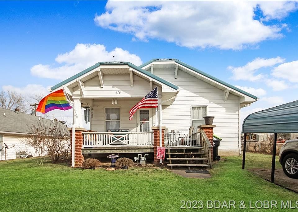 ATTENTION FIRST TIME HOME BUYERS or INVESTORS!!! This little cutie in Versailles was updated in 2016 and could be the perfect house for you! Nice covered front porch to sit and relax after a long day. Enter and you will notice the original woodwork throughout including the lovely French doors leading to the dining room(currently being used as the living room)and wood floors give that cozy feel. Updates included roof, HVAC, electrical, kitchen cabinets and countertops. Nice large bathroom and the second bedroom would make a great kid room or office. Lots of parking but you could easily add a garage. Poured concrete basement gives you lots of storage or play area. Out to the back yard that is level and large, partially fenced for pets or kids. The older shed on concrete pad will stay. One peach and one apple tree in the back will give you lots of fresh fruit. This is on the outskirts of town so access to Eldon or the lake is very easy. Come see it today!