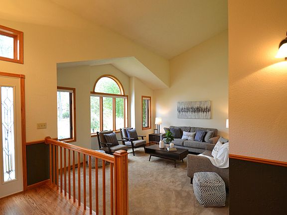 Here is a rare opportunity to own a beautiful home with a large front yard setback and a nearly one-half acre lot with mature trees in the Marina Bay area. This home has a total of 3,800 sf with 4 bedrooms and 3 bathrooms. The entrance foyer is grand with a high ceiling and the front living room has large windows offering an abundance of light. The formal dining room is very spacious and has direct access to the kitchen with gorgeous granite counter tops, stainless appliances, a sit up counter and lots of cabinets for storage. Off of the kitchen is another dining space and access to the large covered deck and spectacular backyard. There is solid hardwood flooring throughout the entry foyer, dining spaces and kitchen. The upper level includes the master suite with walk in closet and a large bathroom with sliding barndoor for privacy, granite counter tops, double sinks, a tiled walk in shower and a linen closet. There are an additional two bedrooms on this level as well as a full bathroom also with a granite counter top. The lower level has a huge family room with a brick faced natural gas fireplace, plenty of room for sofa seating as well as gaming tables in this space and a ground level walkout to the backyard patio. This level also includes a separate laundry room, a fourth bedroom or office, a third bathroom and access to the garage. The basement is another 900 sf of unfinished space to make your own or use as storage and a workshop, and includes the mechanical room and egress window. There is an attached triple stall garage with heater and a shed in the backyard for added storage.