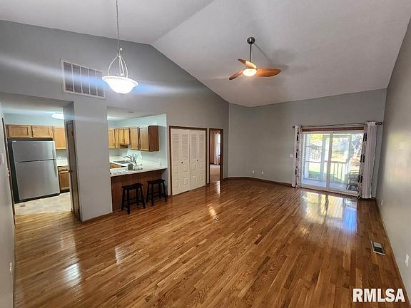 Adorable and well kept 2 bedroom, 2 bathroom with nice wood floors in living/dining combo, vaulted ceilings and open to kitchen. Adorable screened porch. Primary suite with walk-in closet and updated bath. Updates: Feldco windows and slider 2023, new carpet, paint and popcorn scraped in both bedrooms 2023, updated main bath 2022, new SS appliances 2024, new gutters and gutter guard 2024, screen back porch 2022, HVAC replaced 2019, water heater replaced 2017, termite treatment 2024, ducts cleaned 2025, roof replaced 2007.