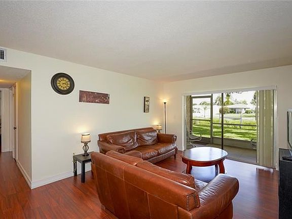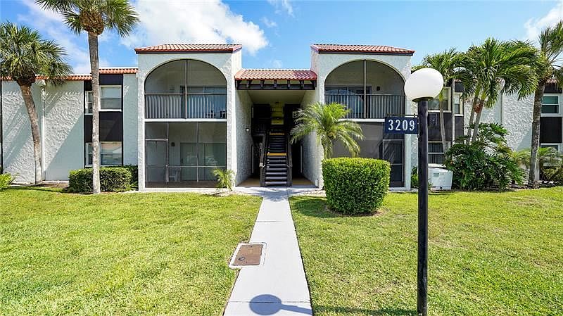 Fantastic opportunity! Hard to find first floor two bedroom, two bath condo conveniently located in the heart of Sarasota. This unit is ideally situated in the complex with the screened lanai overlooking a peaceful greenbelt area. Wood laminate flooring throughout most of the living space. Tasteful tile in the bathrooms. Large pantry in the kitchen. Main bedroom features a big walk in closet. An additional storage closet is located up the stairs which provides lots of extra space. Laundry room is just outside your front door and the pool and shuffleboard court are only a few steps away. Enjoy all of the amenities that Village Brooke offers including two beautiful pools, tennis courts, billiards and more. Low monthly fees. Maintenance-free lifestyle in a terrific location and priced to SELL! This property is being sold AS IS and furnished - inventory attached. Sofa and loveseat do not convey. Room sizes approximate - buyer must verify.