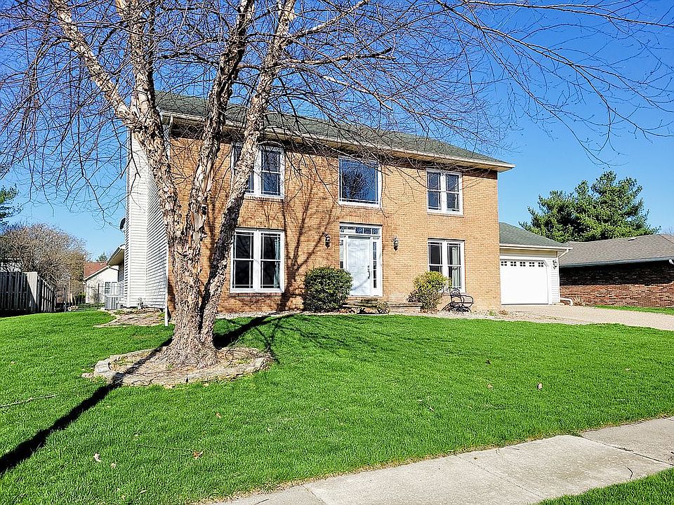 From the 3/4" Hickory hardwood flooring thru-out much of the main floor, and the easy jaunt to the lake, you'll love this fantastic family home with TWO MASTER BEDROOMS - one on the main floor & one up - each with double bowl vanities in the tiled baths! Outdoor living is easy with a huge patio and Sunsetter awning! The roomy kitchen features an immense island, tons of Corian counter tops, & a breakfast area! It would be easy to add a wet bar by the dining room as plumbing is in place for it already! New, dual zoned HVAC systems, whole house humidifier! 80 gal water heater plus an on demand H2O heater for the main floor bath! Most of the carpet and windows have been replaced as well as all new interior doors! Jacuzzi tub in the upstairs MBA and a gas FP in the MBR! Another gas FP is in the dining room. Closet and storage space galore! Walls have been removed to open up the main floor! Spacious work out room in the basement! Handy office right off the 2-story foyer! Lovingly maintained.