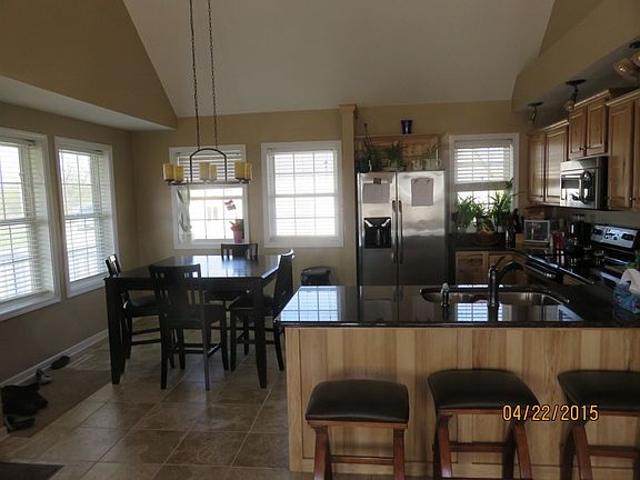 Don't miss this like new, one & a half story home with 3 bd. 3 ba. and a finished walkout basement giving a total of 2,580 sf. of finished living area. The home features, hickory cabinets with Granite counter tops in the kit. and hickory flrs. with a vaulted ceiling in the family room that opens to a maintenance free deck with beautiful views of the countryside. The spacious 1st. flr. ba. has Travertine tile that includes the walk in shower. The walkout basement has a family rm. that opens to a patio for grilling & outdoor gatherings. The Basement also features 2 additional non conforming bedrooms that could be used for an office or exercise room. The 30 x 40 detached garage was built new in 2014 with a concrete floor. The owners have installed fiber optics in the home. The home was framed in 2006, but was not completed until 2013. The acreage has some timber and is adjacent of a 1070 ac. public hunting area. The owner is willing to include a nice Allis Chalmers D-14 tractor and blade