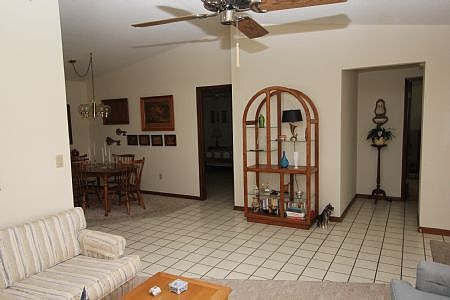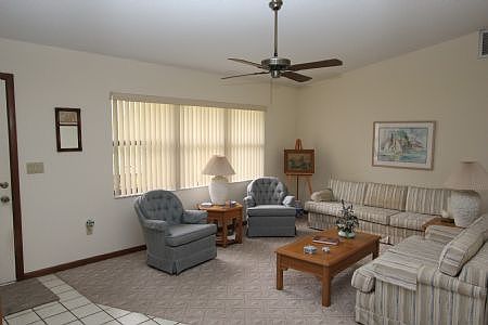 This charming home is fully furnished and move in ready for the season. It is the perfect home for seasonal or year round living. The home is well maintained both inside and out. The floor plan in open and bright with high ceilings, lots of windows, and tile. The living room is 20’ x 13’ and the floor plan flows to the dining area and into the family room. The kitchen and family room are separated by a large breakfast counter, perfect for causal meals. The family room opens to a screened porch making more space for entertaining or grilling out. This area overlooks a huge fenced backyard. There is plenty of room to include a pool if you so desire. The master bedroom has tiled floors and opens with sliders to the screened porch. The master bath has a step-in shower. The guest bedroom is and bath offers nice living quarters for guest. The home has a two car garage and space for your golf cart. The backyard has an orange tree for fresh juice in the morning. In addition there is a workshop/shed that also comes with the house. Golf Hammock has an 18 hole championship golf course, restaurant, pro-shop and driving range.