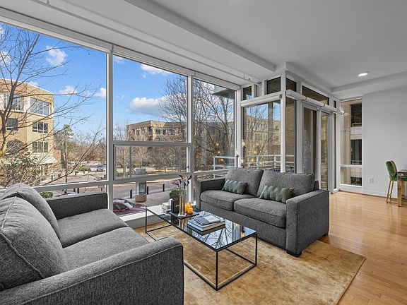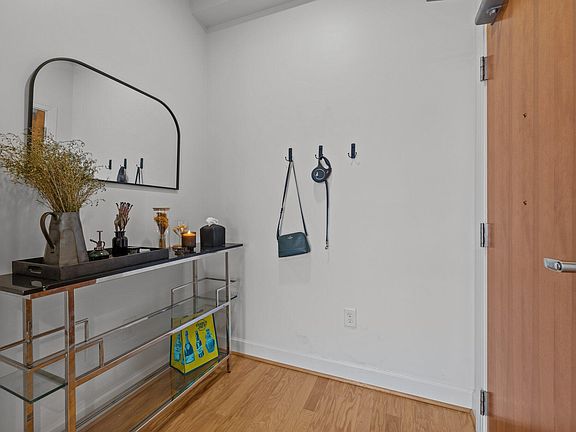 Welcome to East 54! The chic interior of this condo showcases exposed concrete walls and gleaming hardwood floors. Quality appointments and window coverings complete the modern aesthetic. The spa-like bathroom features a dual vanity, beautiful tile work, and a walk-in shower. In addition to the generous bedroom, there is a devoted flex space perfect for an office or den. Step out onto your balcony to enjoy your morning coffee. Residents delight in amenities like a rooftop pool and an on-site gym. Steps from quality restaurants, pharmacy, entertainment, and community gatherings.