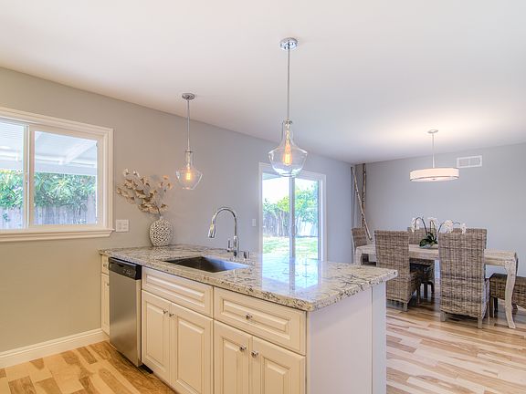 Welcome home to this completely remodeled house in Mesa Verde! Design Firm, Crownarch Designs, did an amazing job on this home with a modern twist of a classic style. The open concept floor plan makes this home feel much larger than the square footage offering a spacious living room with a fireplace and separate dining area. From the moment you walk in the door you will see the attention to detail with the exposed wood beams, high ceilings and finishing touches. The large open kitchen features custom cabinets, granite countertops,stainless steel appliances, tile backsplash and pendant lights. Hardwood floors and large baseboards lead you throughout the home. The bathrooms feature granite countertops, custom moldings, Jeffrey Court beveled tile, Kohler shower faucets, and gorgeous vanities. The exterior of the home has been beautifully landscaped with new stone on the front of the home, new sod, and fruit trees!!