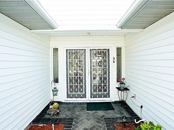 Beautifully updated Wellington model home. 3 bedrooms, 2 Bathrooms, finished and enclosed Florida room with air conditioning looking over the golf course making this home 1951 square feet of living space.. The flooring has been updated with wood laminate flooring in the living area and all bedrooms. The kitchen features stainless steel appliances, Corian like counter tops, a modern porcelain sink with updated faucet. The kitchen also has a built in work desk and breakfast area. The master bathroom has been updated with a fully tiled walk in shower featuring a seat and grab handle. The walk in closet is very spacious and mirrored to brighten the bathroom. The third bedroom is an office or bedroom. All windows are double pane thermal windows. The roof is less than 3 years old and the air conditioner was replaced 8/2018. This is a beautiful home and will not last long. All room sizes are approximate and shall be verified by the purchaser. All furniture may be purchased separately for $5000.