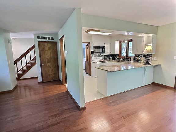 Imagine waking up to breathtaking water views every day! This charming two-story home at 3209 Royer West offers a unique opportunity to embrace a tranquil lifestyle without sacrificing convenience. Boasting 3 spacious bedrooms and 1.5 beautifully updated bathrooms, this residence is ready for you to move in and start enjoying. Step inside and discover a home that has been thoughtfully updated throughout. The heart of the home, the kitchen, shines with elegant granite countertops and modern appliances (all included!). Updated flooring flows seamlessly through the main living areas, complemented by fresh paint and updated lighting fixtures that create a bright and inviting atmosphere. Entertaining is a dream with this property! The expansive living room features a cozy wood-burning fireplace with a blower, perfect for those chilly evenings. The wonderful dining room, bathed in natural light, opens through updated patio doors to an outdoor space that will truly take your breath away. Prepare to be captivated by the very large deck, which extends even further over the water, offering unparalleled views and direct access to your own slice of paradise. Imagine sipping your morning coffee or hosting unforgettable gatherings in this stunning setting. As a bonus, a paddle boat is included, inviting you to explore the serene waters at your leisure. For those who enjoy casting a line, the pond offers fishing opportunities during certain times of the year, adding another layer of appeal to this exceptional property. Upstairs, you'll find all three generously sized bedrooms, ensuring a peaceful retreat. The large master bedroom is a true sanctuary, featuring its own private door leading to a gorgeous bathroom complete with both a relaxing tub and a convenient shower. Practicality meets convenience with main floor laundry and a handy half-bath located on the main level. The oversized two-car garage provides ample space for vehicles and storage. Nestled on a spacious approximately half-acre lot, this property offers plenty of room to spread out and enjoy the outdoors. Cultivate your green thumb in the designated garden space, and keep your tools and equipment organized in the convenient shed. Built with quality as a custom home in 1982, this residence offers a solid foundation and timeless appeal. Whether you're a growing family, a couple seeking tranquility, or an individual who loves to entertain and enjoy nature's beauty, 3209 Royer West offers a truly exceptional living experience. Don't miss your chance to own this waterfront gem!