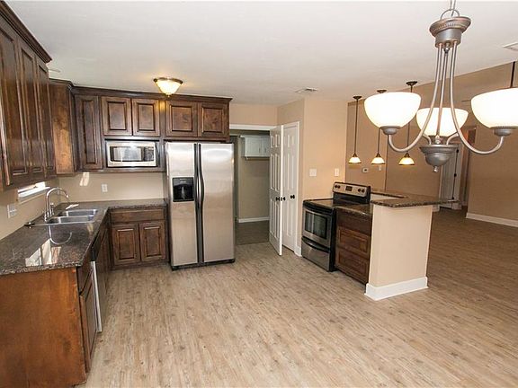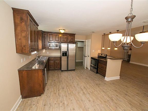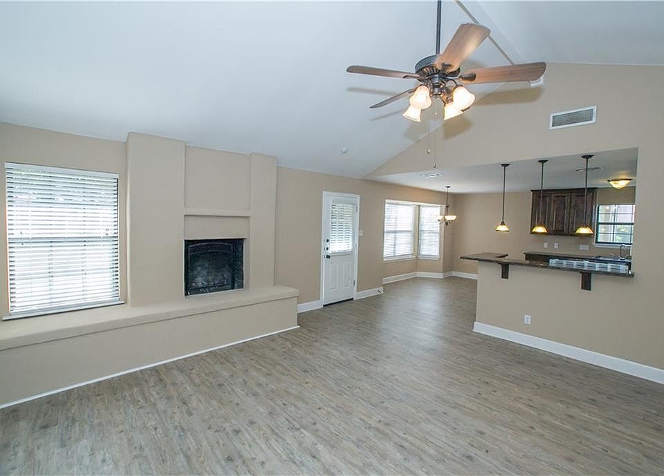 Remodeled home: Open floor plan,Custom alder cabinets, granite counters, stainless steel app.(May 2018)laminate wood floors, stucco around wood-burning fireplace, HUGE utility room, 2 car garage, 4th bedroom upstairs. Great trees and back patio with large yard with lots of trees. Apply online smartsoucerealty.com and click apply now