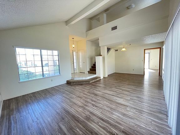 ADVERTISED RENT INCLUDES SEWER, TRASH & *RBP Welcoming home with a bright formal living room featuring expansive sliding doors that open to the backyard, filling the space with natural light. The family room, located just off the kitchen, includes a fireplace and ceiling fan. The primary bedroom is thoughtfully separated from the secondary rooms and includes dual sinks for added convenience. Upstairs, a versatile loft provides the ideal space for an office, playroom, or creative studio. The spacious backyard features low-maintenance desert landscaping, artificial turf, and a lattice-covered patio.