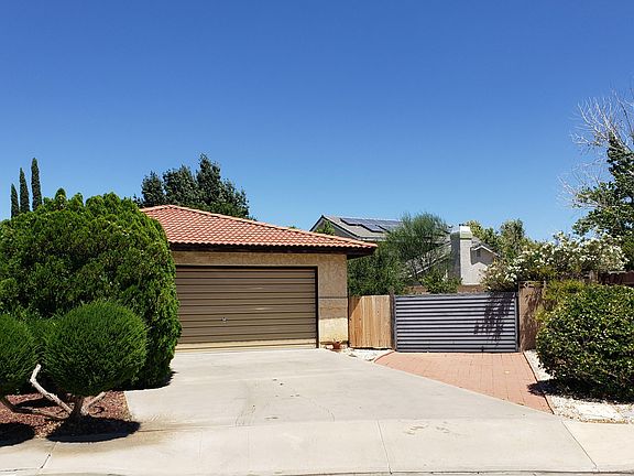 Take a look at this single story cul-de-sac home in the desirable Villamont tract in West Lancaster. This home has a lovely portico entry, and the large eat-in kitchen has a big picture window over the sink, lots of cabinet space and a breakfast counter. There is a cozy used brick fireplace in the family room, perfect for those cool fall nights ahead. As you pass through the arched doorway to the hallway you will see that the hallway is lined with beautiful wood cabinetry. This home has many additional features such as ceiling fans, tile counters, sky lights in bathroom, and mirrored wardrobe doors. There is gated RV access on the side with plenty of space for an RV, boat and toys, plus there is an ideal space on the other large side yard for a pool, entertainment patio, garden, etc. Mature fruit trees include pomegranates, cherries and more. This is a great neighborhood with lots of pride of ownership, and close to schools, shopping, the Woodland Preserve, AV College and more!