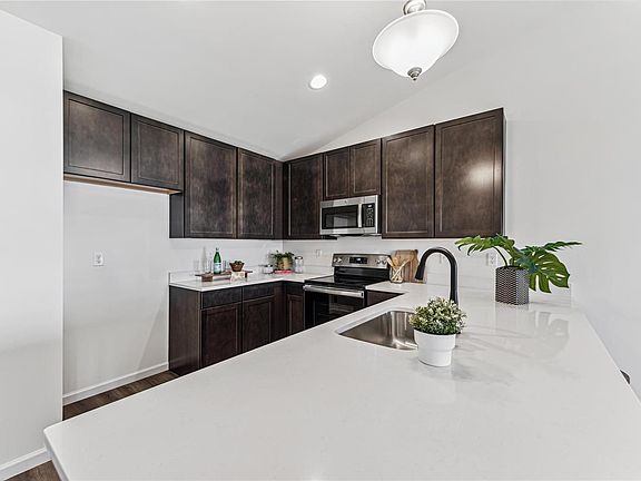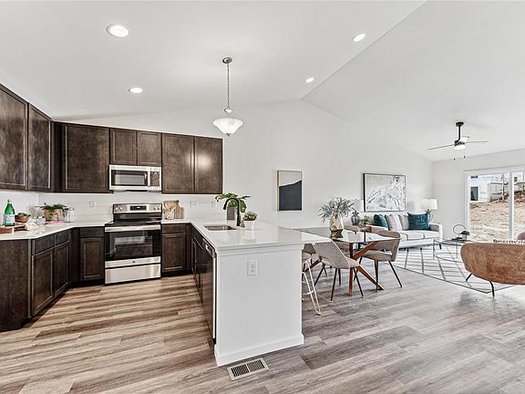 This beauty is Move In Ready for you NOW!!!!! The Summerfield Ranch is 2 bed 2 bath w/walk-out and is perfect for entertaining! Vaulted ceilings, 6ft windows with luxury vinyl wood grain flooring in main living areas. The kitchen features white 42” tall cabinets, solid surface countertops, large peninsula with extended countertop breakfast bar, and stainless steel GE appliances. The Primary suite features walk-in closet and private bathroom with walk-in shower. White interior doors, upgraded lighting and ceiling fan, main floor laundry, garage and poured patio. The lower level includes a ¾ bath rough-in for future finish. Beautiful home with many upgrades. The Timbers is a 75-acre master-planned community surrounded by scenic hills, woods, and common ground. Home warranties are all transferable including the 10-year builders’ warranty. This one won’t last! Agent owned. Duplicate listing of 24022462