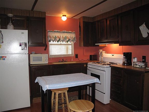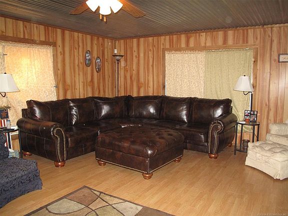 Close to water's edge & nicest Marina on Lake Tenkiller. Expanded trailer w/addition of large family room.2 beds,/2 ba, partial furnishings appliances remain.Fenced yard + gated carport.T111 siding, wrap around deck, circle drive.Room for guests & family.