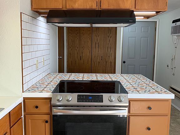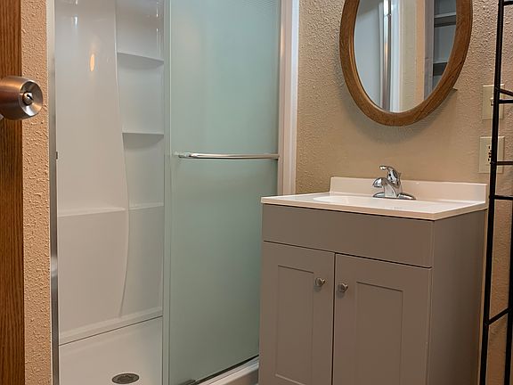 Recently renovated 600sf, 2 bedroom/1 bath apartment above owner's detached garage is available for rent. Address is 321 1/2 Chapin St. in Chadron. Primary bedroom is 90sf with a large closet. Second bedroom comfortably fits a twin bed or is perfect for an office. The apartment is in a quiet neighborhood within walking distance to Chadron State College and downtown. It is clean and well-maintained, featuring many recent updates, including new range and kitchen island; air conditioner; bathroom shower and vanity; and windows and blinds. The outside features a wooden deck and private alleyway entrance, as well as nearby on-street parking. Rent is $635/month plus utilities with a month-to-month lease. A security deposit is required before move-in. This is a month-to-month rental agreement. Tenant pays utilities and the security deposit is due before move-in. Parking is on-street. Unauthorized tenants are not allowed. No smoking in the apartment.